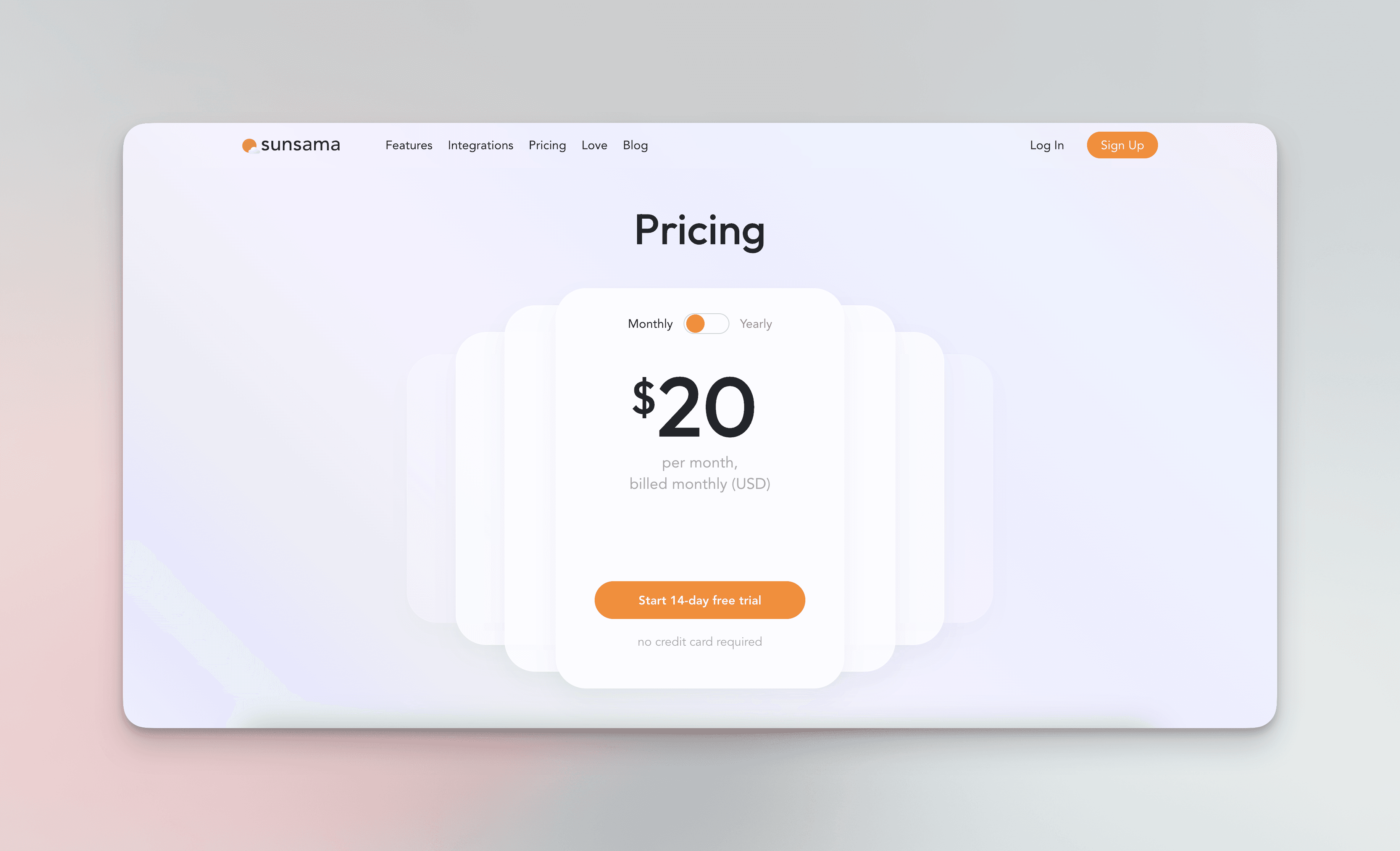 If you're considering Sunsama for your team's daily planning needs, it's important to understand the associated costs. Sunsama offers two primary pricing plans: monthly and yearly. The monthly plan is priced at $20 per person per month, whereas the yearly plan offers a discounted rate of $16 per person per month, billed annually. Both plans come with a 14-day free trial, and no credit card is required to try the platform. So, if you invite one teammate to your workspace, the total monthly cost would be $40. You can find more details on Sunsama's pricing here.